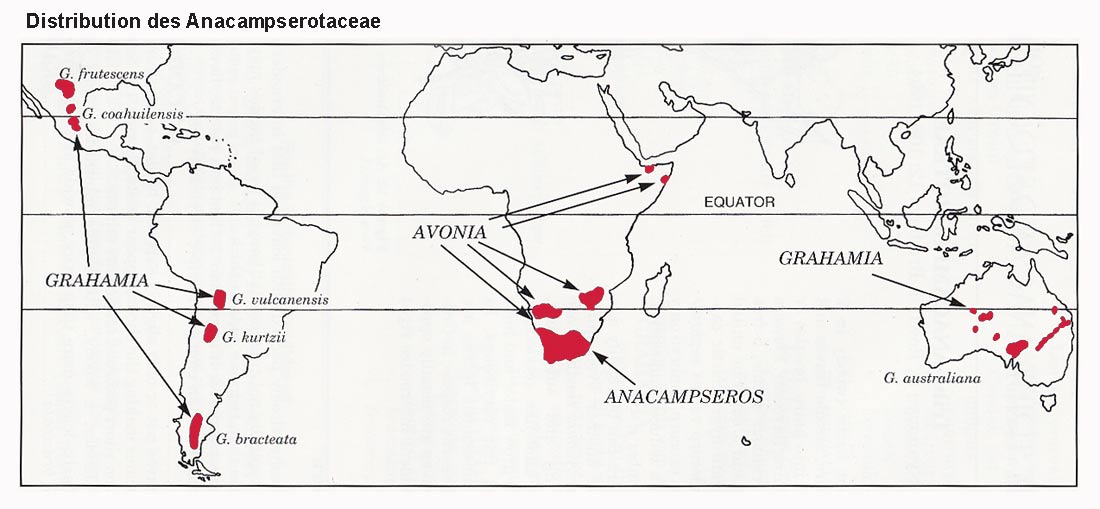 Une plante très proche d'Anacampseros par sa fleur et ses fruits identiques, c'est la raison de son classement dans la même famille. On ne peut la rencontrer qu'au Mexique, en Argentine ou en Australie.