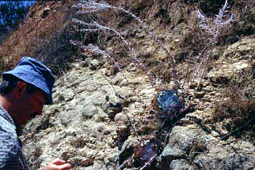 Nous décidons de quitter la côte pour découvrir l'intérieur du pays. Nous prenons la route 76 East à partir d'Oceanside. Juste avant la "Old Hvy 395" et avant l'interstate 15, nous avons la chance de rencontrer des Dudleyas et nous prendrons quelques photos. Il s'agit de grandes plantes de plus de 10 cm de diamètre avec de nombreuses tiges fleuries. |