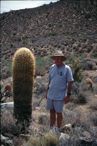 Un très beau dudleya (à gauche) et Moi à côté d'un ferocactus de bonne taille.
