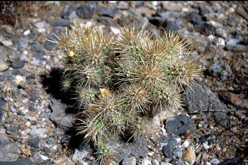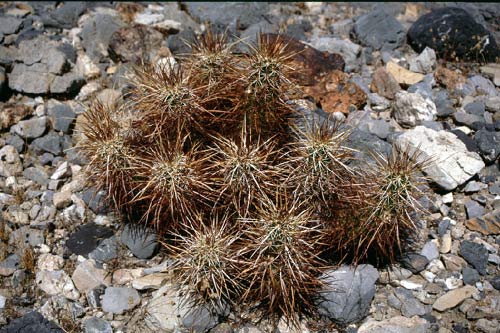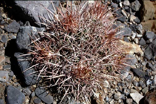 Dans ces lieux, les plantes deviennent rares. Pour les cactées, le plus remarqué sera Echinocactus polycephalus qui peut atteindre 50 à 60 cmm de haut et un diamètre de 60 cm également. Ses aiguillons plus ou moins longs sont toujours magnifiques. Les plantes rencontrées font 25 cm de diamètre.